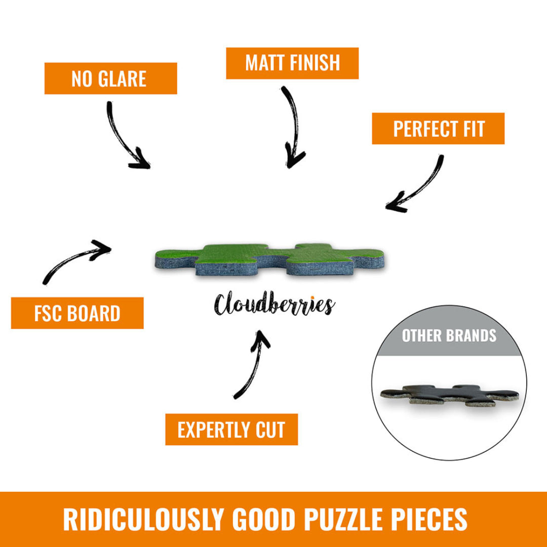 The perfectly symmetrical, mirror-effect 2000 piece jigsaw puzzle Reflection from Cloudberries is the ideal challenge for you! This unique puzzle is 39" wide when finished and has two symmetrical sides. However, the pieces on each side are cut slightly differently, making this a puzzle like no other!