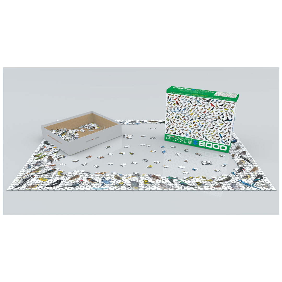 The World Of Birds 2000 piece jigsaw puzzle presents a colourful collage sure to be a hit with any bird watcher. This puzzle from Eurographics shows well over 100 types of birds.
